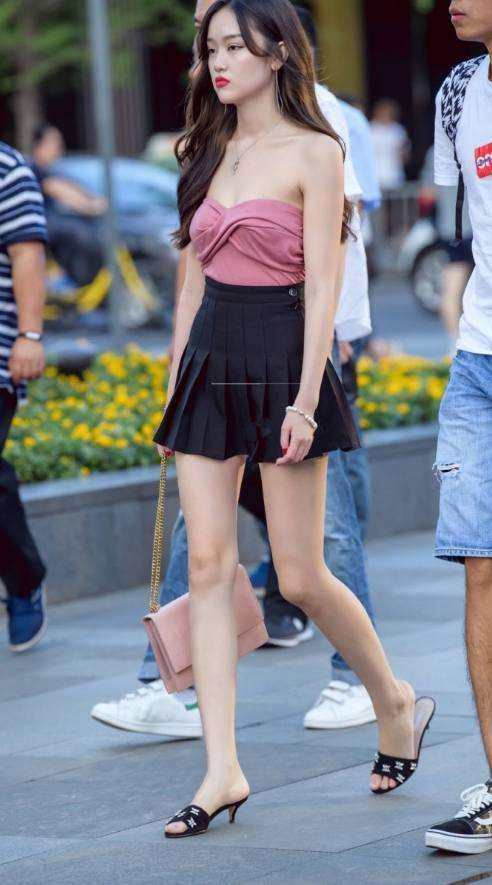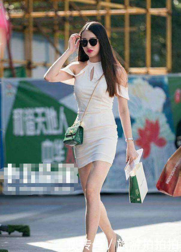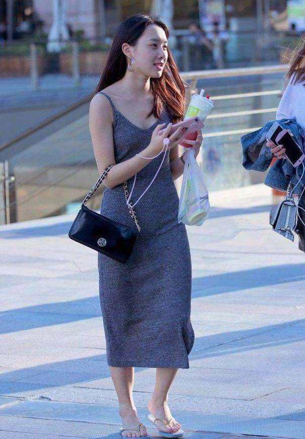 美女,连衣裙突出凹凸,皮肤洁白。多么苗条,性感的身材,在低矮的吊带下,骄傲的上了圈,真是令人兴奋。