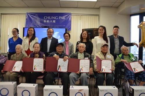 松柏大厦为亚裔传统月和老人月举办庆典活动,为七名百岁以上的耆老颁发奖状。(美国《世界日报》/牟兰 摄)