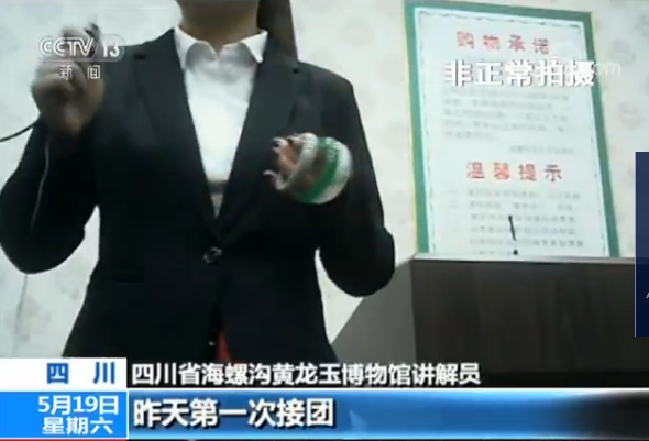 四川省海螺沟黄龙玉博物馆讲解员:说我们公司最近在搞整顿,然后检查我们的工作,等一下抽到这个房间来,你们就多配合我好不好?