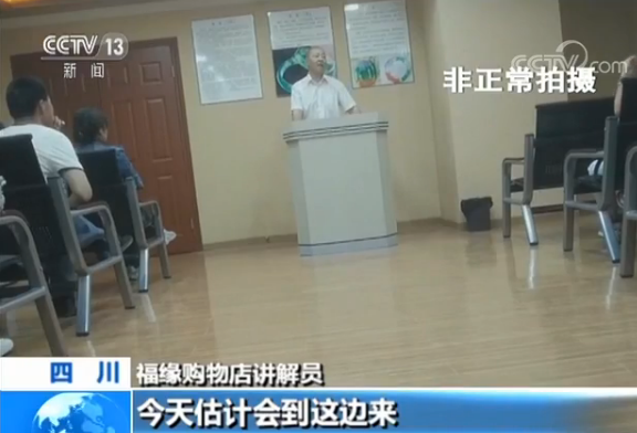 另一条标价180元的成都都江堰青城山一日游线路上,在一家叫福缘的购物店里,记者和游客们同样遇到了一位自称"富二代"的人。这家购物店位于成都市郫都区,游客们刚被带进来,讲解员就开始在为"富二代"的到来进行铺垫。