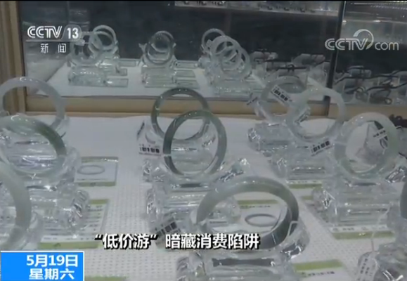 所谓的卖场其实是另一个跟休息室面积差不多的房间,柜台里摆满了各种翡翠饰品。但此时已经是晚上七点,游玩了一天的游客又累又饿,情绪并不高。此时,这位邵先生开始放狠话要挟游客。
