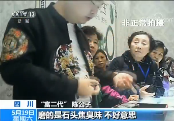 " 富二代"陈公子:我其实不是这里的老板,这里可以说是我爸爸的,也是我爷爷传给我爸爸的。我们家里面像这种珠宝店不是很多,在全中国有108家,在云南缅甸的边境我们有两座玉石矿场,在成都有三个加工厂。