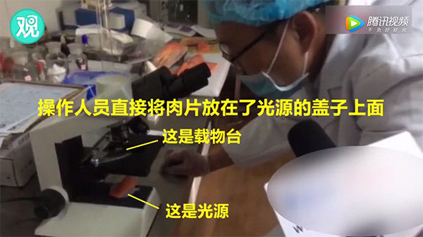 在这则被广泛传播的10秒钟片段中,工作人员声称要用显微镜检测鱼肉切片中是否有寄生虫……