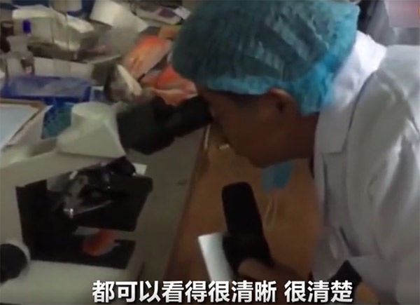 更尴尬的是,记者也跟着看了看显微镜,在画外音传来“这样可以看得很清楚”时,他也并没有对“检测”提出任何质疑。