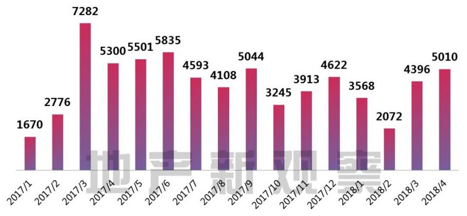 先来看看2018年1-4月的成交量。1-4月宁波商品住宅共成交15046套,成交面积192.8136万方,同比2017年下降11.7%,去年3月份一个月就成交7283套,达到单月成交峰值,所以从成交量看,2018年1-4月成交量似乎并未达到高潮,但去年1-4月成交量突然暴增是有原因的。