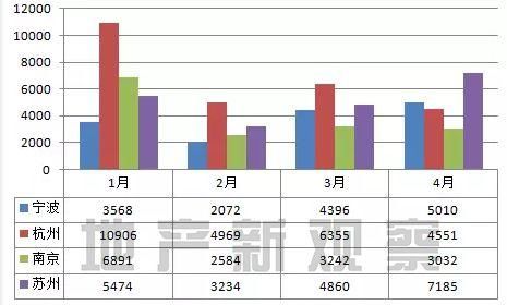 下面就来看看今年1-4月这4个城市的成交套数和成交均价,宁波又处于一个什么水平呢?