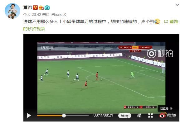 董路:进球不用那么多人!小郭带球单刀的过程中,想按加速键的,点个赞!我不知道未来他们会怎么样,但今天,他们踢出的足球无疑是值得称赞的!比赛最后时刻,国青21号球员这次个人表演,是全场比赛这群小伙子们表现的集中缩影——自信、从容、勇敢又充满智慧!加油! 感谢根宝!根宝国宝!防守不丢人!输球丢人!