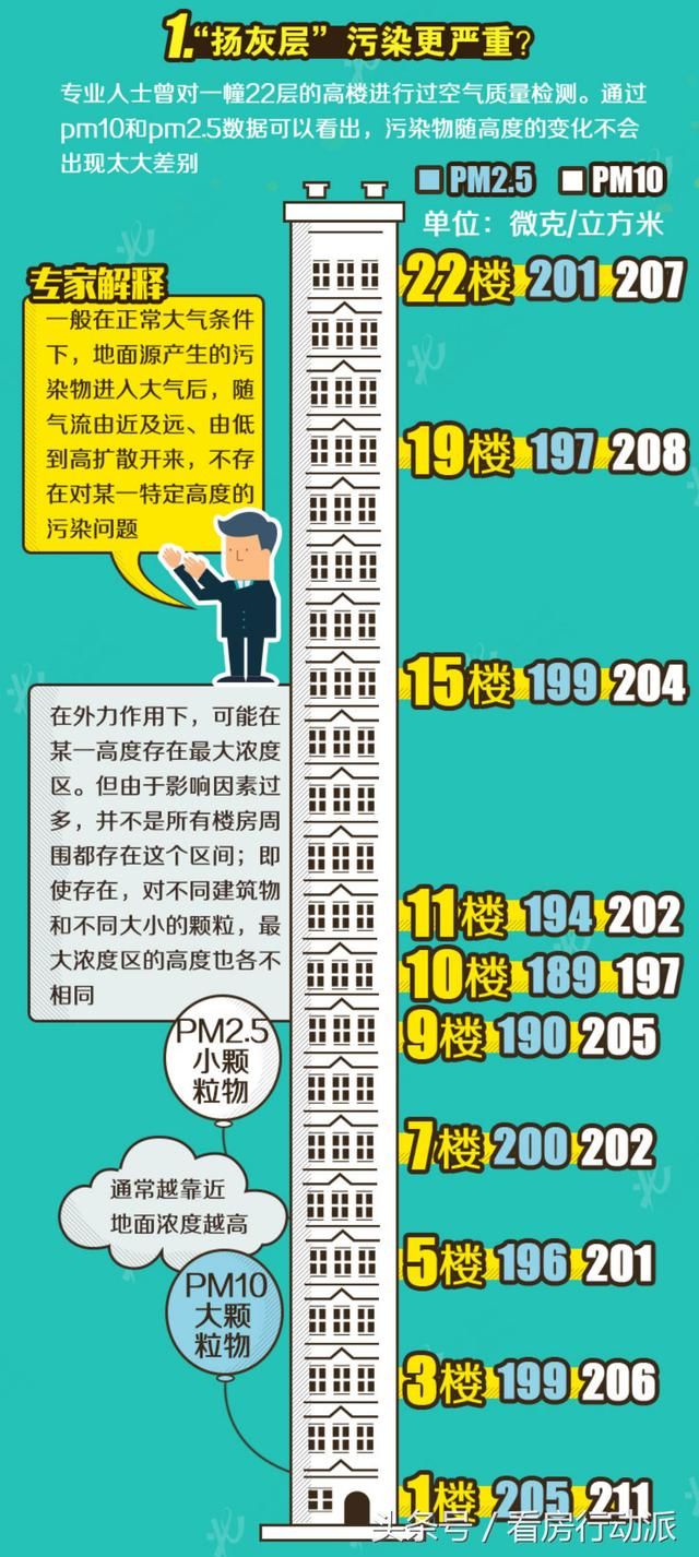 北大环境与工程学院教授谢绍光也表示:细颗粒物PM2.5在近地面对流层混合比较均匀,一般越往高空走,颗粒物浓度会降低。但高度会很高,至少离地面200-300米的空间里,浓度不会有大的差距。即如果你哪天能选择住到第100层300米高以上的住宅楼,再考虑“扬灰层”的问题更有价值。