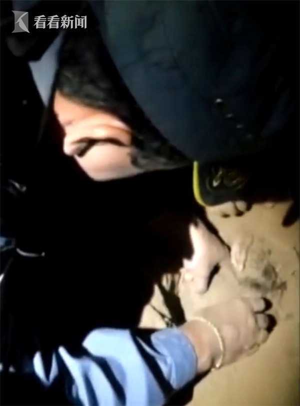 视频中,2名警察徒手挖土,试图找到婴儿尸体,但令他们颇为震惊的是,被埋的女婴竟然还活着,并且发出小声的呜咽声。于是他们小心翼翼地拨开女婴身边的土,于6月5日晚上十点左右将其从50厘米深的土坑中成功救出。