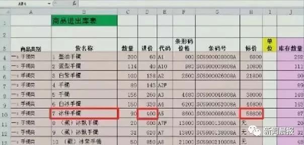 墨油手镯,进价 60 元,