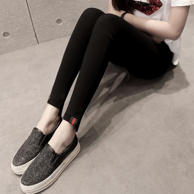 2017春季新款黑色打底裤这一裤子十分的新颖,抽抽绳式的设计,宽度的大小可以自动的调理。