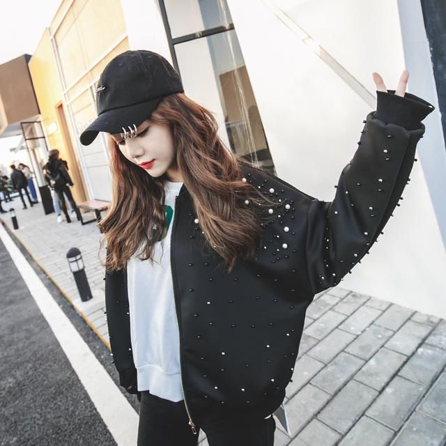 百搭黑色显瘦2017新款春装这款秋装小西装上衣+小脚裤两件套,翻领设计修饰脸型, 收腰设计的上一套装穿在身上的话会更加的显瘦,胸前的点缀,既优雅又高贵