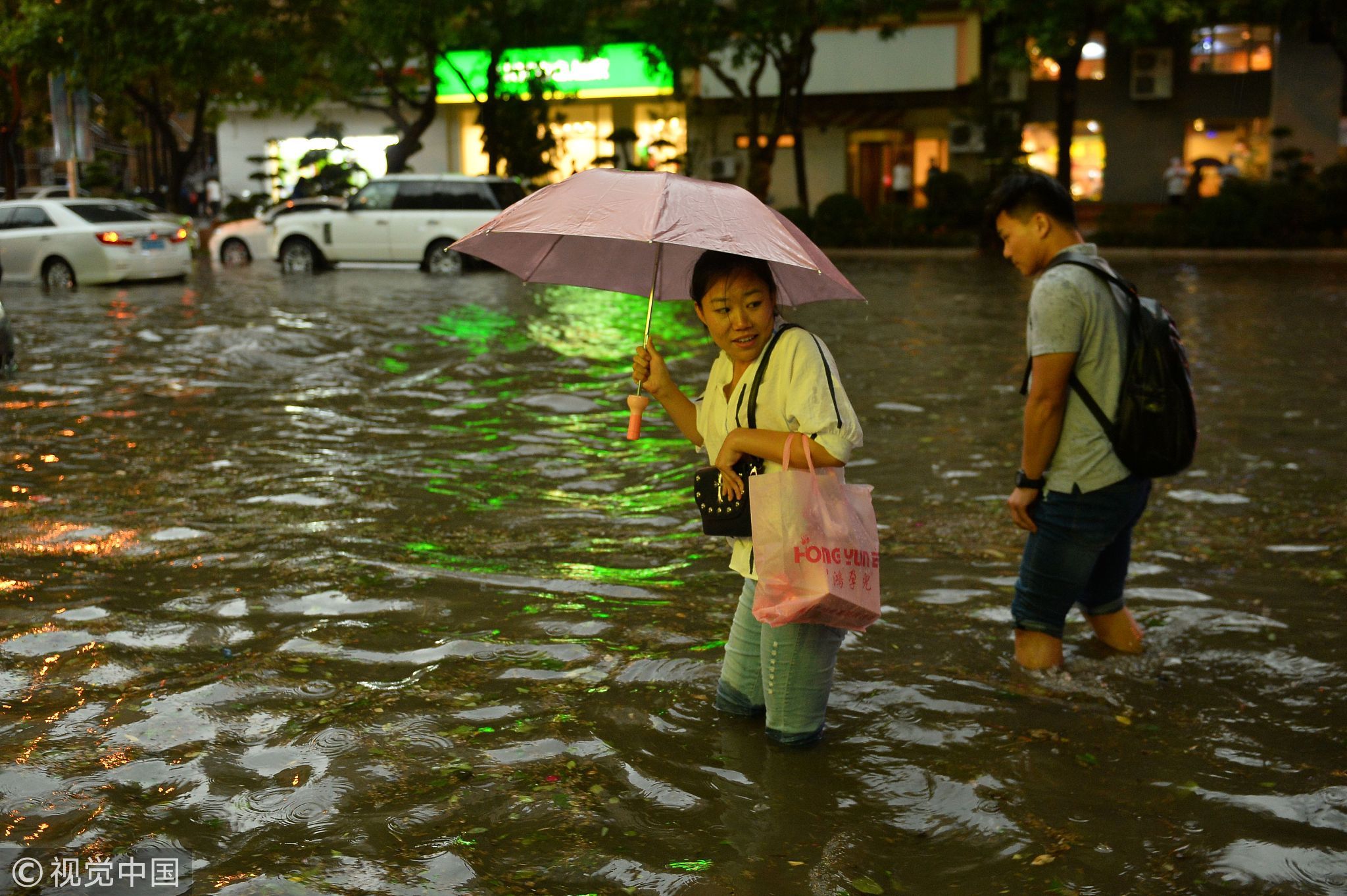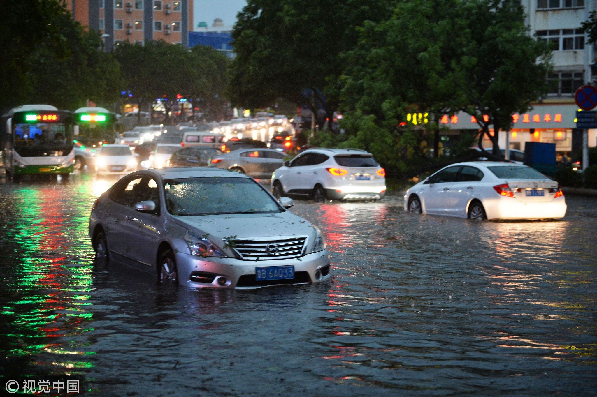 6月13日,青岛突遭大风冰雹雷电强对流天气袭击,市区大量树木折断阻塞交通毁伤车辆,部分低洼路段积水严重。许多海鲜都被吹上了天。图据中国气象局微博、视觉中国