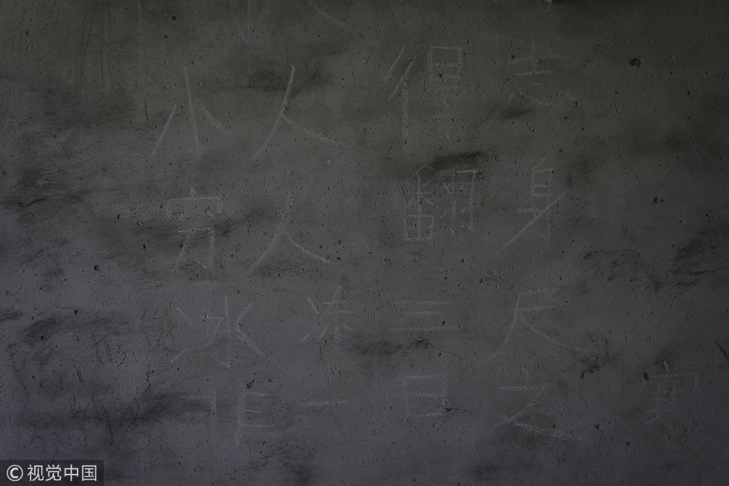 2017年8月4日,天津静海,“蝶贝蕾”传销窝点内的墙面上布满了各种涂鸦文字。来源:视觉中国