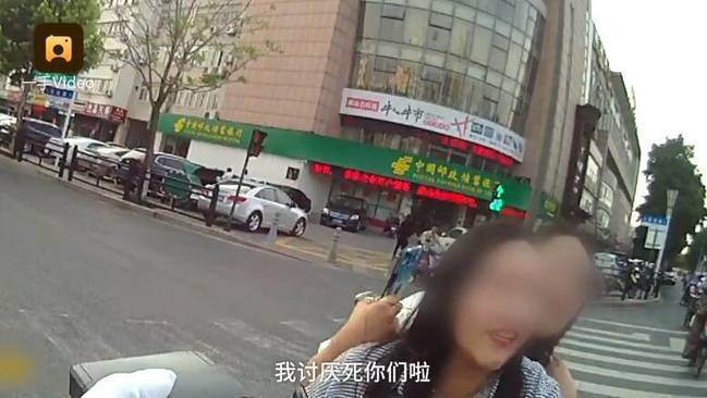 6月11日,江苏盐城,一女子骑电动自行车载人闯红灯过马路,被民警拦下进行处罚。女子因赶时间上班,催促民警快点处罚,还抱怨:我讨厌死你了。