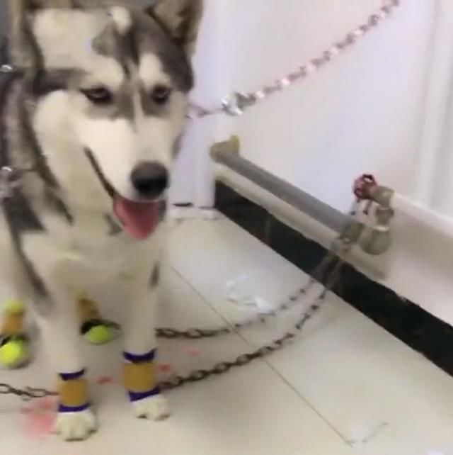 [分享]主人出门担心哈士奇拆家,想办法将它困起来,二哈:这有点过分了