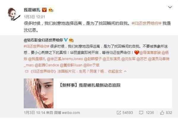 娜扎和张翰虽然已经分手了,但是还有很多的粉丝在关注着他们分手后的动态,就在不久前娜扎发布了这样一条微博。