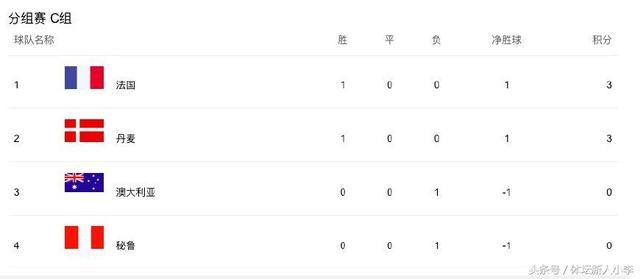 C组:法国有惊无险取胜,丹麦力克秘鲁