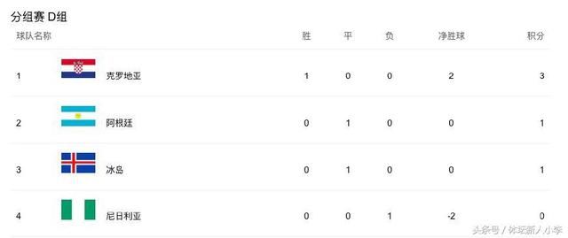 D组:阿根廷被冰岛顽强逼平,克罗地亚2-0战胜尼日利亚
