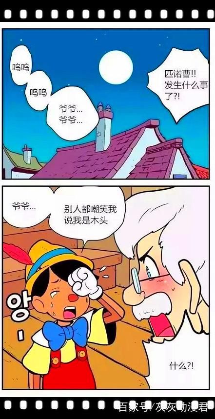 而同时他在这个时候也学会了撒谎,仙女为了惩罚匹诺曹,每当他撒谎的时候他的鼻子就涨长一截!而最后匹诺曹在老爷爷和仙女教导下也终于成为了一个懂事的乖孩子,这则通话故事原本就是为了教导小孩子不要撒谎,而今天我们恶搞漫画也开启了匹诺曹和老爷爷之后的”欢乐生活“