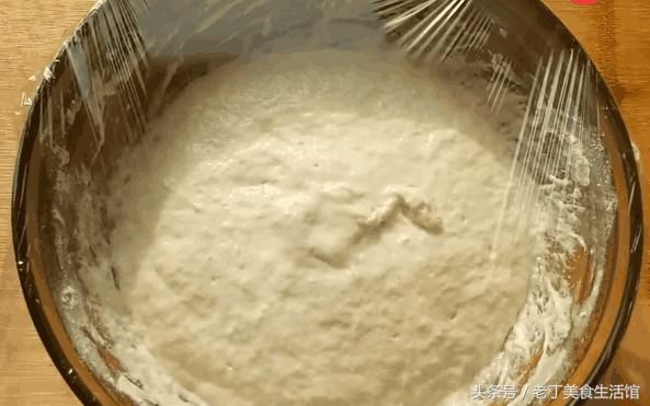第1步发面:碗中加入500g的小麦面粉、5g酵母、5g白糖(有利于酵母发酵),在面碗中加入500ml的温水,边倒边顺着一个方向搅拌至面糊上劲,密封发面半个小时