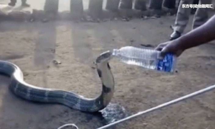 对此,大家都很不解。于是,其中一人急忙去找来了动物专家。专家看后,思索了几分钟。随后,就拧开一瓶矿泉水,往地上倒。令人惊讶的一幕,发生了。只见眼镜王蛇,迅速地扭动身体,朝着水源去。
