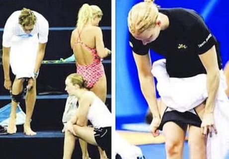但是在赛场上,很多国外选手的开放,也是令我们从新认识三观,一名身穿银色比基尼的外国女运动员,在观察四周情况后,便将浴巾缠在腰际,准备换上泳裤,但没想到过程全被场边的摄影师拍下!