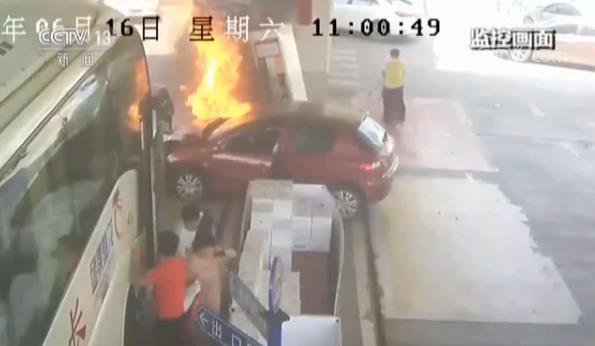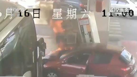央视网消息:本月 16 日,在湖南长沙的一个加油站内,一辆轿车撞倒加油机引发火灾。现场 7 名工作人员用 38 秒的时间扑灭大火、转移群众,避免了一起重大