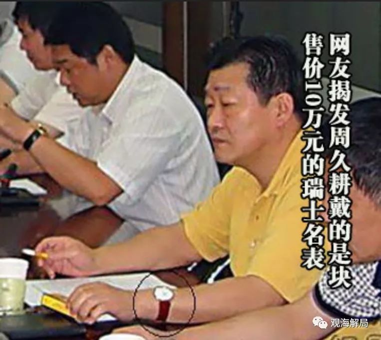2008年12月14日,有网友发帖称,“周局长一条烟抵下岗工人3个月低保。”配发照片注:“九五至尊”,一条1500元!12月15日,有网友发帖指认周久耕所戴手表是“江诗丹顿”,价值约10万元。