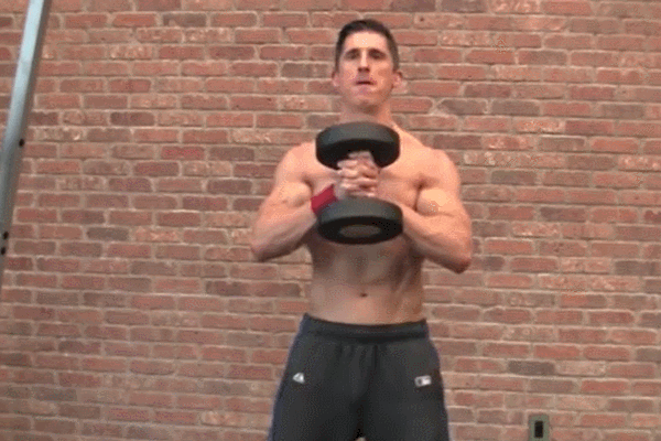 激活你的上半身,利用紧抓哑铃的动作,激活胸肌、三角肌、斜方肌和核心肌群。相对于单纯的高脚杯深蹲,这个动作更为高效。
