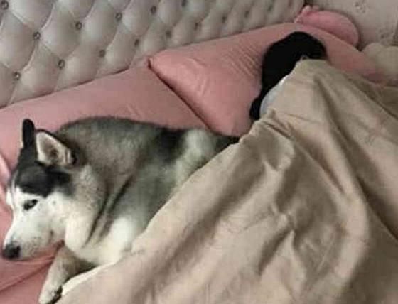 哈士奇:叫人起床也很累的,我就先睡一会,一会就叫小主人起来。