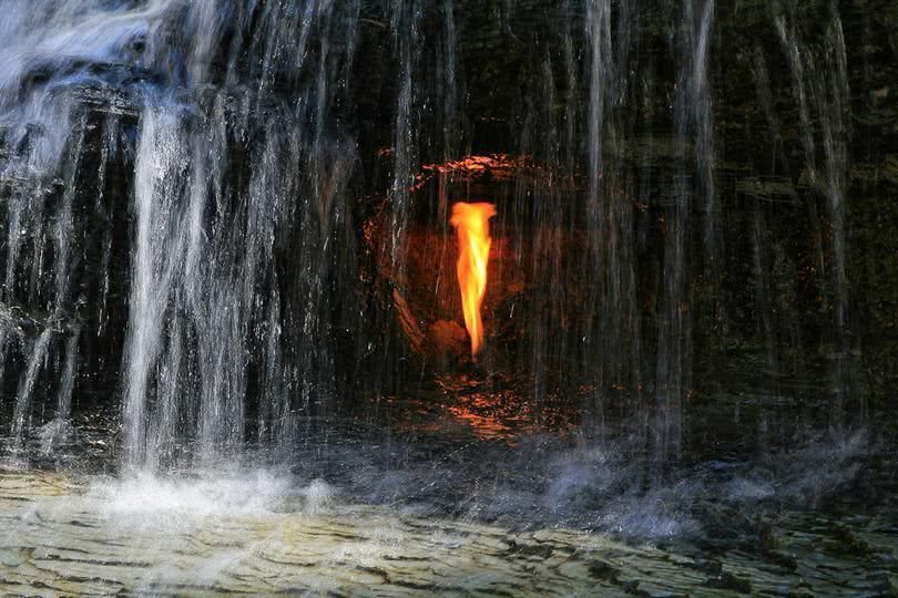 在美国栗邻县公园的一处瀑布之下,就存在着火焰燃烧于瀑布之下的神奇现象,而且无论瀑布是急流落水还是枯水,火焰都不曾受到任何影响,这团火因此就被科学家们称作是“永恒之火”。