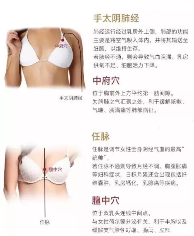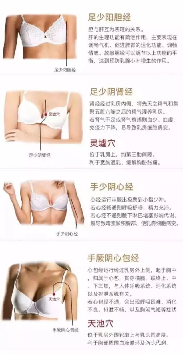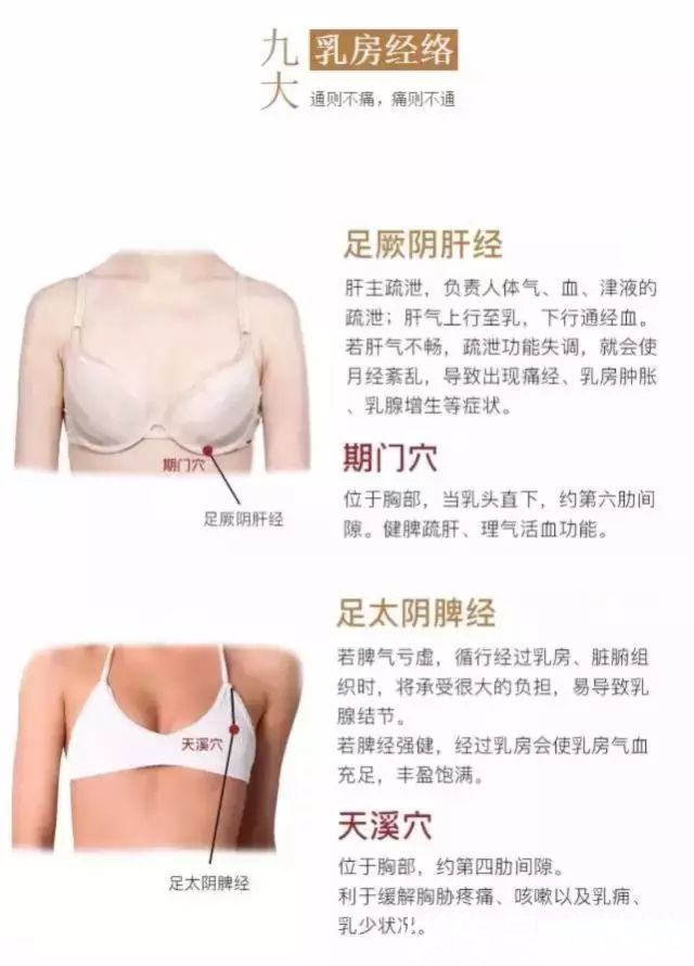 直接通过胸部的经络有9条(包括:肺经、心包经、心经、任脉、肾经、胃经、脾经、肝经、胆经),所以很多身体的问题都会影响到胸部健康,所以胸部也成了女人最危险的地方!