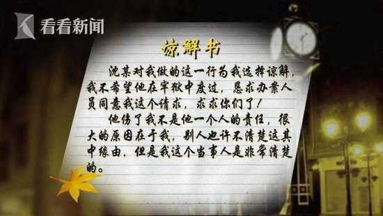 不过令所有人意外的是,李小姐在捡回一条命后并没有恨沈某。她在清醒后的第一时间,写下了无条件谅解书。她表示沈某在感情中对她十分迁就,沈某的失控有很大一部分原因是因为自己的无理取闹,她不愿意看着爱人余生在牢中度过。