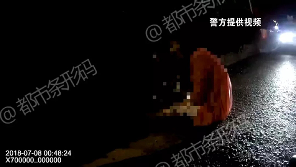 [分享]女子醉酒半夜趴机动车道刨土 好心司机停车开双闪
