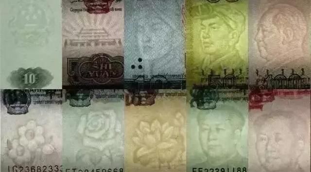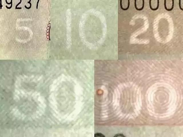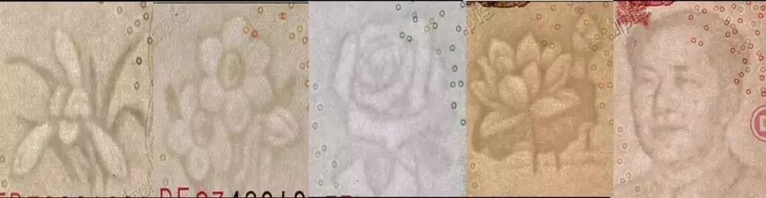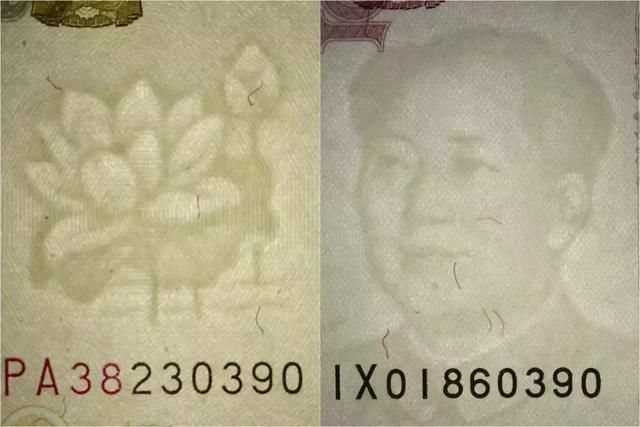 每每收到一张钞, 都会不自觉的举过头顶, 对光看水印。 你有这个习惯吗?  水印不仅漂亮, 而且是我们辨别假币的 一个重要方法, 那么你有没有想过, 水印是怎么形成的?  各种水印 ▲各种水印 水印在抄纸过程中, 通过预制专用的模具 (有凹凸图案), 改变纸浆纤维的密度, 水印类 按水印在票面位置 分布的不同, 可分为满版水印、 连续水印和固定水印。  满版水印 ▲满版水印 连续水印, 水印固定出现在 某一行或者某一列的位置。  连续水印 ▲连续水印 固定水印, 最常见的一种, 水印出现在票面的固定位置。  固定水印 ▲固定水印 我国首次自主研发的 固定水印应用在 第三套人民币的10元券上面, 水印图案为天安门。  天安门水印 天安门水印 ▲天安门水印 2 如果按水印的透光性不同, 又可分为白水印、 黑水印和多层次水印。 白水印也就是高透光水印,  第五套人民币上的面额数字白水印 ▲第五套人民币上的面额数字白水印 黑水印是相对于 白水印而言的。  实心五角星黑水印 ▲实心五角星黑水印 多层次水印是 指不同透光性的水印 组合在一起形成的层次感 较强的水印图案。  第五套人民币上的人像和花卉多层次水印 ▲第五套人民币上的人像和花卉多层次水印 庞大的水印家族 第一套人民币就 已经有水印了, 59种券别, 其中有16种券别是 有水印图案的。  波纹满版水印 ▲波纹满版水印 第二套人民币1角、2角、5角、 1元、5元券(1956年第一版) 为空心五角星满版水印。 2元、3元、5元券 (1953年版和1956年第二版) 为实心五角星花纹 混合满版水印(俗称海鸥水印)。  海鸥满版水印 ▲海鸥满版水印 10元券为中华人民共和国 国徽图案固定水印纸 (前苏联技术)。  国徽固定水印 ▲国徽固定水印 第三套人民币10元是 天安门固定水印 (我国自主技术), 其它面值都是满版水印。  天安门固定水印 ▲天安门固定水印 1元和2元有国旗五星和 五星古币两种图案, 其它面值都是国旗五星, 角币只有个别版本带水印。  五星古钱币满版水印 ▲五星古钱币满版水印 第四套人民币的水印有: 古钱币满版水印(1元、2元、5元)、 五星满版水印(1996版1元)、 农民人像(10元)、工人人像(50元)、 毛主席人像(100元)。 我国在第四套人民币中 首次应用固定人像水印技术。  固定人像水印 ▲固定人像水印 第五套人民币上的水印图案有: 1元兰花,5元水仙花, 10元月季花,20元荷花, 50元和100元毛主席人像。  第五套人民币水印 ▲第五套人民币水印 水印不仅漂亮, 还是很重要的防伪手段, 对钱币集藏爱好者水印 也是集藏的一个重要参考, 一些特别的水印 还成为了珍稀品种。 不止是人民币有水印 不光是人民币纸钞上有水印, 贵金属纪念币证书及 纪念券上也有防伪水印。  菊花水印 ▲早期的菊花水印  熊猫水印 ▲现在的熊猫水印  奥运主题金银币的特定水印 ▲奥运主题金银币的特定水印 水印曾拍出天价! 2011年一幅 《圣母玛利亚》水印孤品, 在法国巴黎某私人拍卖会上 一次就拍出70万法郎的高价。  《圣母玛利亚》水印孤品 ▲《圣母玛利亚》水印孤品 名家水印,一张难求。 一些水印设计, 由于出自名家之手, 后世升值价值极高。  《查尔斯王子和戴安娜公主》水印肖像 ▲《查尔斯王子和戴安娜公主》水印肖像 我国自1957年起, 开始研制自己的 专用水印钞纸, 80年代中期 我国终于研制出 高难度的固定头像水印,  我国于1987年4月27日 起陆续发行的 第四套新版人民币, 以全新的面貌 展现在我国人民面前, 证明了我国的水印技术 已经达到世界领先水平。
