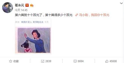 [分享]崔永元转发文章回应冯小刚:我回你十耳光