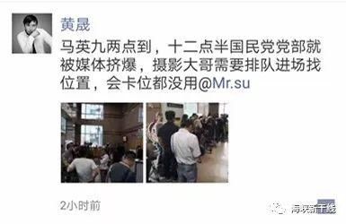 不过18日中午,小编的同事、东南卫视驻台记者黄晟在朋友圈里感慨了一下:国民党中央党部早在中午就被媒体包围得水泄不通,连他这样身高马大的“卡位大神”都无用武之地。