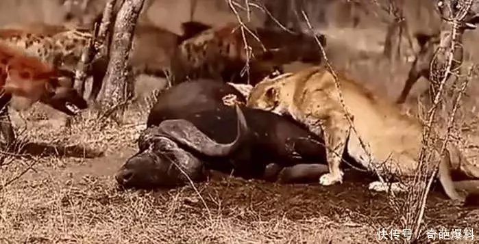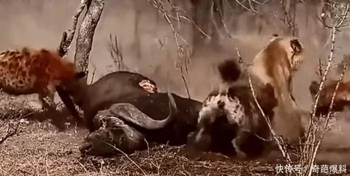 [分享]三只狮子将鬣狗猎杀的野牛据为己有, 却不知危险正在悄然降临