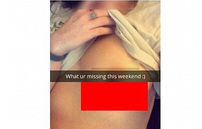 有个妹子本来打算通过Snapchat这个社交平台发一张“阅后即焚”的裸照给自己的男票,照片中,妹子诱惑滴撩起了上衣,露出了胸部和腹部,估计她的男票好这口~然后妹子还配上了字幕:你周末错过的东东哦~