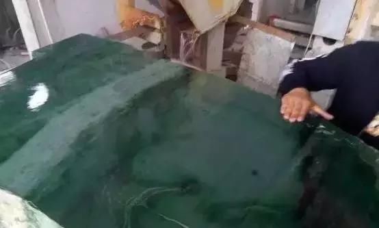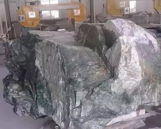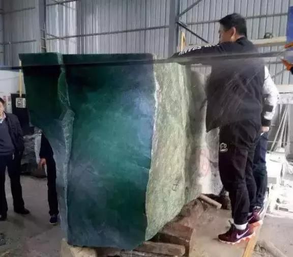 不要以为这是哪家的假山,这就是一块碧玉料!重达十吨,开料都得花费好一般功夫呢吧!