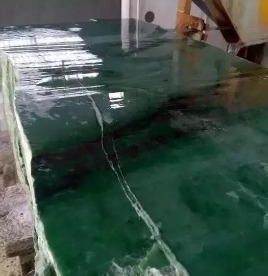 天天和你们分享赌涨了的翡翠原石,今天换个新鲜的。我们来看看这近十吨碧玉原石开料场面吧!太壮观了!