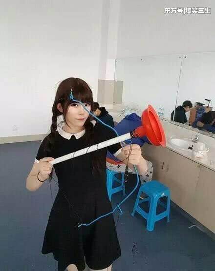 妹子,玩什么不好,马桶托你也玩的这么高兴,真是绝了