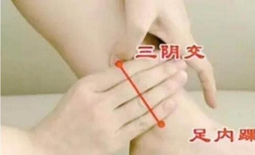 ★按摩手法:每天晚上5点—7点,肾经当令之时,用力按揉每条腿的三阴交穴各15分钟左右即可。
