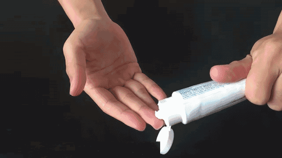 第二步:挤入一小段牙膏。