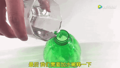 第二步:倒入约4瓶盖的白醋,再加1倍的清水稀释。