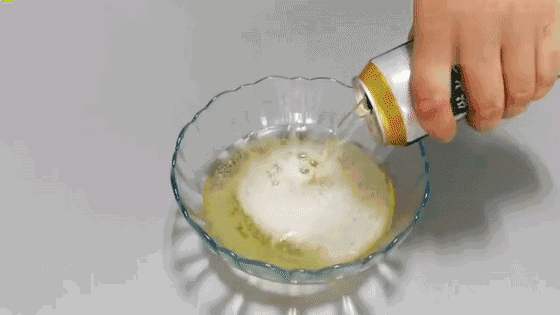 第一步:碗里倒入啤酒,再挤入一段牙膏。