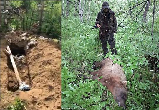 两只野生棕熊被猎人射杀,猎人现在正监视着墓地,因为他们担心会有更多的熊参与进来,担心它们会回来。在现场,棕熊的爪印随处可见。