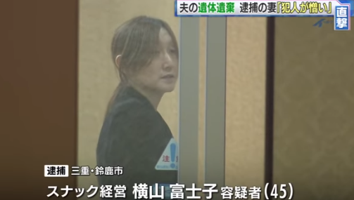 据日本TBS新闻7月25日报道,24日,日本警方以涉嫌遗弃尸体罪将死者的妻子横山富士子(45岁)及其情夫上山真生(29岁)逮捕。据警方初步调查认定,横山富士子因与丈夫离婚未果,联手情夫将其杀害并抛尸。不过,目前尚未最终定案,警方仍在进一步调查。