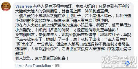 “你看现在谁在帮你清理?你(让小孩)去拉大便你不清理,要我们香港人清理?”